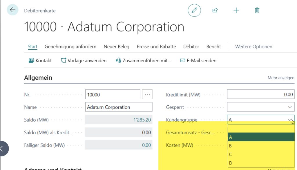 The purpose is extend the customer table with a enum field CustomerClass - German Caption "Kundengruppe".