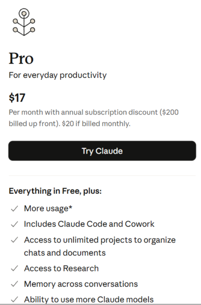 Vorbereitend ist hier ein Claude Pro Abo notwendig. Darin ist Claude Code integriert.